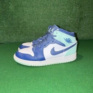 Nike Air Jordan 1 Mid Blue Mint 554725-413 Gs Gradeschool Boys Size 4Y