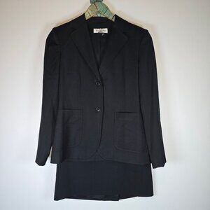 Brooks Brothers suit, wool pencil skirt, black blazer set, 2-piece suit, business formal wear, 2P size suit, 4P size suit, black wool outfit, blazer with pockets, pencil skirt outfit, corporate attire