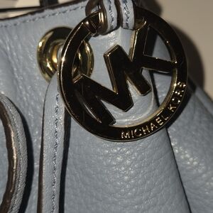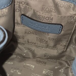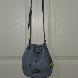 Elevate your style with this Michael Kors light blue leather bucket bag. Perfect for any occasion, this chic accessory combines elegance and functionality.
