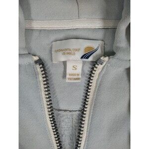 Fundamental Coast Los Angeles 1/4 Zip Pullover Hoodie Men's Small. Color is a pale icy gray/green, barely green more gray. See pics. Does have a stain on the back of the neck/shoulder. Priced accordingly