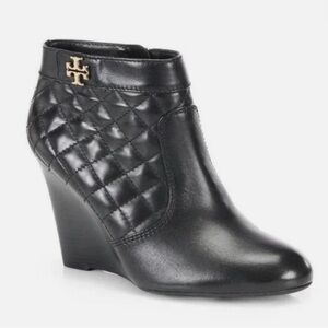 Tory Burch Leila Leather Quilted Wedge Booties 8