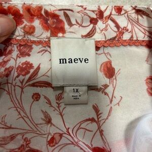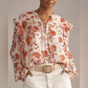 Anthropologie MAEVE floral blouse Ruffle balloon sleeve sz 1X Semi Sheer Tie
