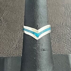 Vintage Taxco Mexico sterling silver crushed turquoise ring