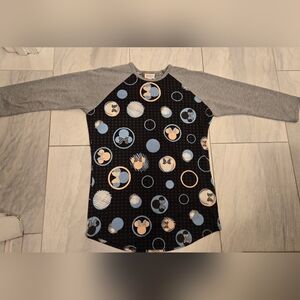 Womens Lularoe Disney Minnie Mouse Randy Shirt Size Small. Gray & Black with Blue & Pink Minnies, 3/4 sleeves. Great used condition barely worn.