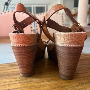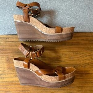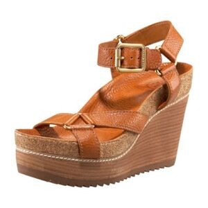 Tory Burch Womans Sandals Brenden Brown Leather Cork Wedge Size 10