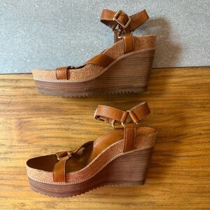 Tags: Tory Burch, Brenden, Wedge Sandals, Platform, Cork, Espadrille, Leather, Tan, Brown, Saddle, Luggage, Cognac, Gold Hardware, Multi-Strap, Criss-Cross, Ankle Strap, Adjustable, Luxury, Designer, Resort Wear, Vacation, Cruise, Summer, Spring, Neutral, Classic, Chic, Coastal Grandmother, Quiet Luxury, Preppy, Casual,