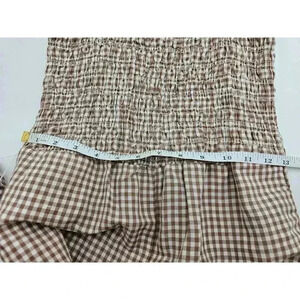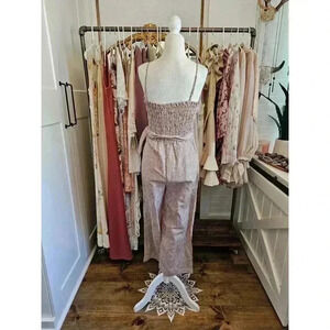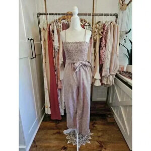 House of Harlow 1960 Women's XS Smocked Tan Gingham Capri Linen Jumpsuit