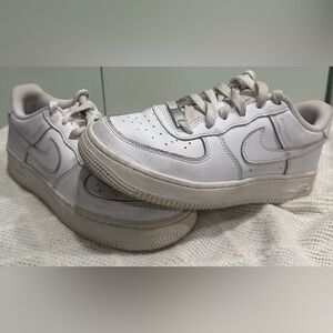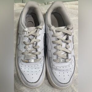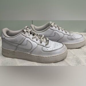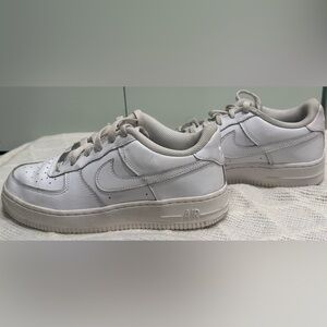 NIKE Size 5.5 Youth Boys White Air Force One Monotone Low-Rise Lace Up Sneakers
