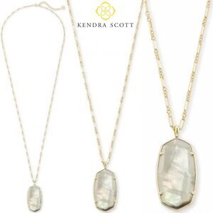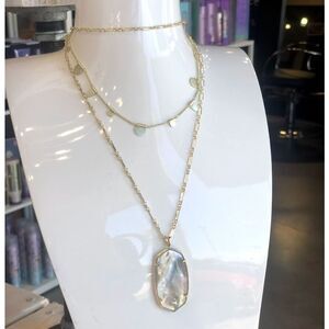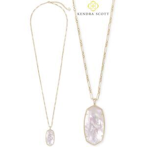 NWOT Kendra Scott Faceted Reid Ivory Mother Of Pearl Gold Long Pendant Necklace