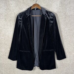 Express Blazer Jacket Womens Small Black Velvet Longline Open Front Party Formal