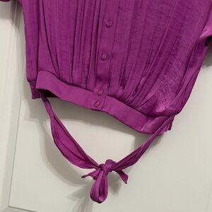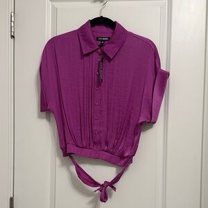 Chic magenta shirt with button-down front. Features a stylish tie at the waist that can be tied in the front or the back. Brand new with tags.