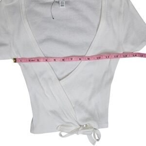Topshop Short Sleeve Ribbed Ballet Wrap Top, Size 4, White, NWOT