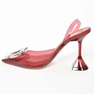 Amina Muaddi PVC Begum Glass Crystal Rhinestone Buckle Slingback Heel Pumps