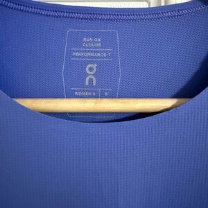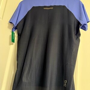 Elevate your activewear with this On clouds top. Sky blue front with charcoal accents. Ideal for any workout.