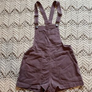Aerie Brown Purple Women's Overall Shorts Size XS Adjustable Straps Pockets