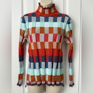 Vibrant Multicolor Checkered Turtleneck Sweater
