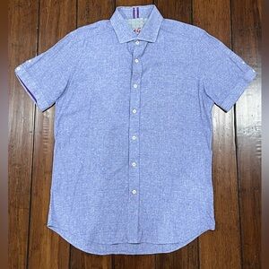 Robert Graham Linen Blend Short Sleeve Button Down Mens Size M Blue Tailor Fit