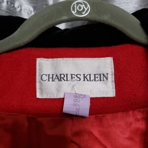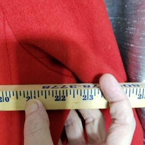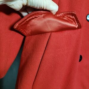 Vtg. 1970's Elegant Red 100% Wool Trench Coat Black Velvet Collar Sz16 Old Money