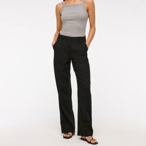 Abercrombie Curve Love Tailored Linen-Blend Wide Leg Pant in black color, size 24 (00) in short length. Has a high rise fit.