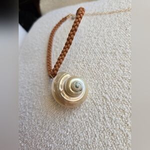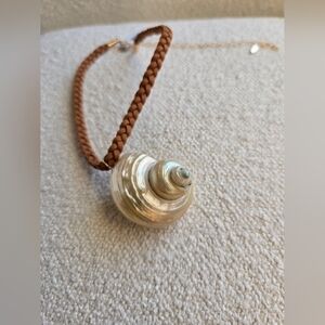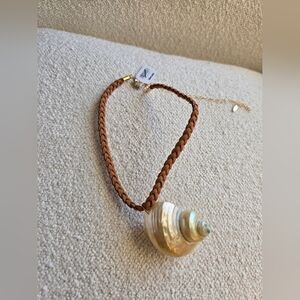 Totally timeless in a shore-inspired style, this stunning choker necklace features a staple braided chain with defined seashell pendant at center for a super nautical finish.