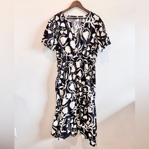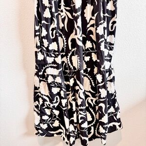 Boho Coastal Cottagecore Tiered Midi Dress 3X Black White Plus Size Chic