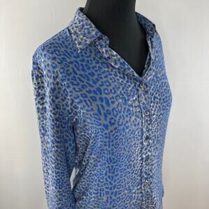 J. McLaughlin Blue Gray Leopard Print Silk Button-Down Long Sleeve Top