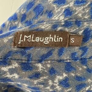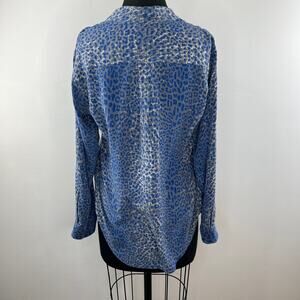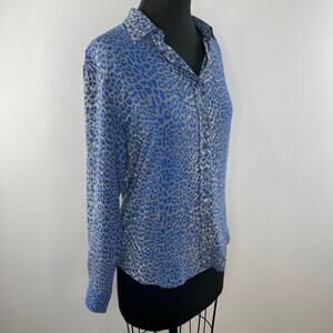J. McLaughlin Blue Gray Animal Leopard Print Silk Button-Down Long Sleeve Top S
