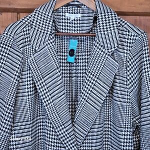 Maurices Black White Houndstooth Plaid Blazer Coatigan Jacket Plus Size 3X