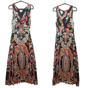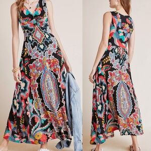 Anthropologie Maeve “Camilla” maxi dress in bold black multi paisley print. Flattering twist-front detail with flowy maxi skirt and soft stretch fabric.