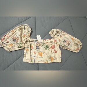Chic crop top with square neckline. Puff sleeves add flair.