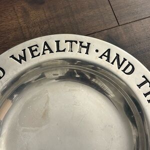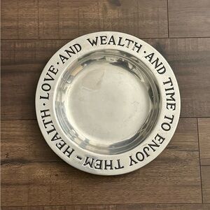 Add a touch of timeless sentiment to your home with this Wilton Armetale "Health, Love & Wealth" plate. Part of the American Inspirations collection, this piece features the classic inscription: "Health, Love, and Wealth, and Time to Enjoy Them."