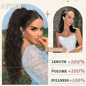 Elevate your look with this 3-layered hair design ponytail that looks natural and feels as soft as your hair. Instantly increases the volume and fullness of your hair with no pressure to your scalp.