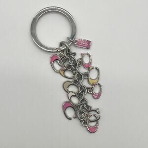 COACH Bag Charm Keychain, Pink Yellow and White Letter Cs