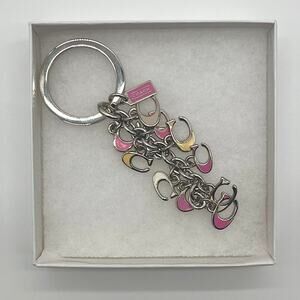Charms included: pink coach hang tag, pink, yellow, and white "C"s with silver trimming
