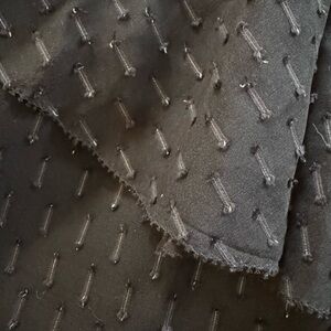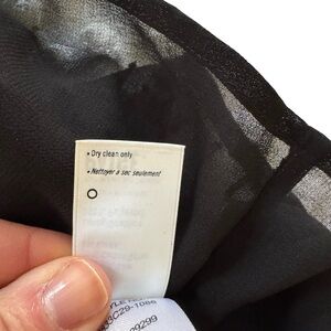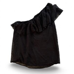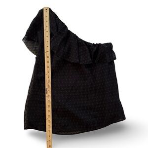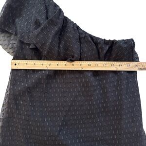 Chic one shoulder black top with stylish ruffle design. Ideal for a sophisticated look and holiday events. Fabric pattern has just a hint of sparkle. Lined bodice. Tag says dry clean only but I have successfully washed in cold water on delicate. Please see pics for measurements.