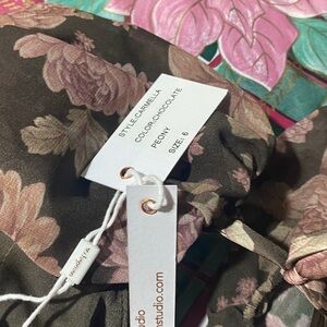 V Chapman Carmella Dress In Chocolate Peony Floral Maxi Gown Corset Size 6