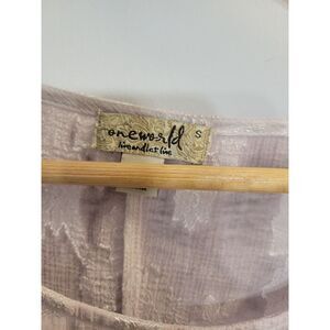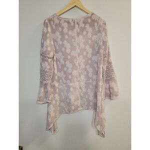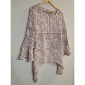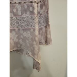 One World Women's Top Size Small Mauve Silver Boho Crochet 3/4th Bellsleeve