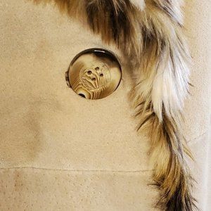 Y2K Tan Suede Leather Faux Fur Leopard Lining Collar Sz Small.