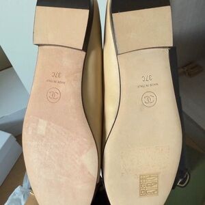 CHANEL Beige and Black Flats with Logo Detail
