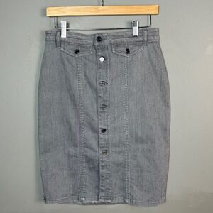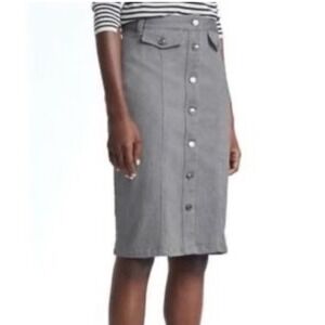 Banana Republic Denim Skirt Size 6 Gray Pencil Button Front Retro Preppy
