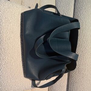 Cuyana Teal Leather Messenger Bag