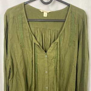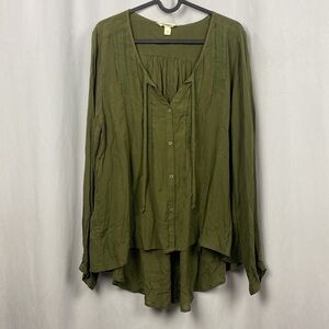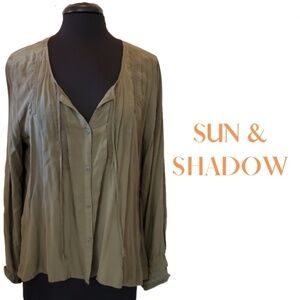 Sun & Shadow Olive Green Button Front Lace Ribbon Accent Blouse - Size Large