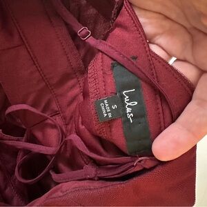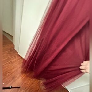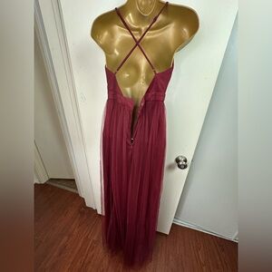 Lulus Burgundy, Rare Beauty, Tulle, Backless, Dual Front Slits, women’s Maxi Dress. NWOT, Size S