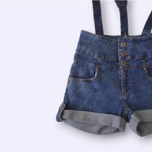 Vintage Y2K Retro High Rise Overall Denim Shorts