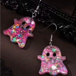 NWT Halloween Pink Sparkle Acrylic Ghost Dangle Earrings