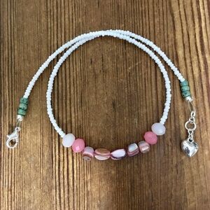 Pink and White Ladies Beaded Necklace, Pink Shell Ladies Necklace, Handmade