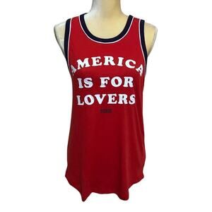 NWT. Tank Top for Women Size XS. Sleeveless, Graphic front "America is For Lovers" (positive vibes), red, white, and navy, rounded bottom hem. Pictures are part of description.