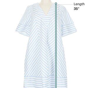 NWT Crown & Ivy Size M Casual dress, V-neck, short sleeve, striped print, blue, popover