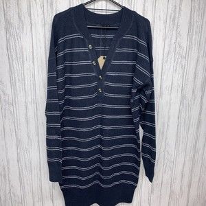 Womens Size M Prana Milani Henley Striped Sweater Dress Navy NWT. Chest 23 Length 36.5