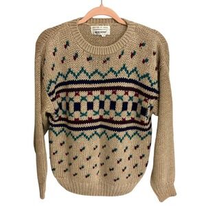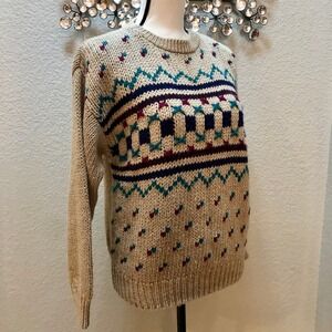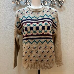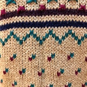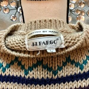 JJ Fargo Handknit Sweater Women's Large (L) Camel Colored Maroon Navy VNTG 80s
